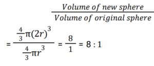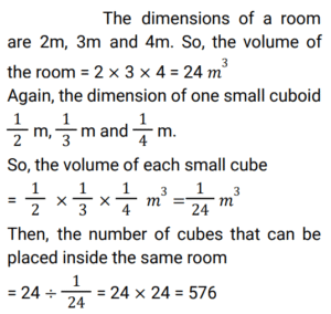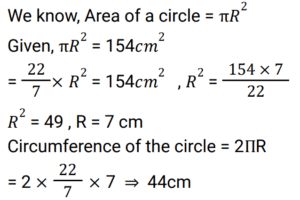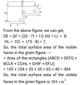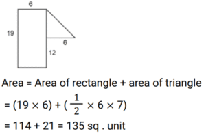 Mensuration (Railway Maths) (Part – VI)Total Questions: 501. If the area of a circle is 154 cm² then the circumference of the circle is ? [RRB NTPC 04/01/2021 (Morning) ](a) 44 cm(b) 22 cm(c) 36 cm(d) 11 cmCorrect Answer: (a) 44 cmSolution:2. How many straight lines does a cuboid have ? [RRB NTPC 04/01/2021 (Evening) ](a) 10(b) 12(c) 16(d) 24Correct Answer: (b) 12Solution:3. What is the total surface area of the visible faces in the given figure? [RRB NTPC 05/01/2021 (Morning) ](a) 384 cm²(b) 905 cm²(c) 580 cm²(d) 1325 cm²Correct Answer: (a) 384 cm²Solution:4. If the dimensions of a room are 2 m, 3 m and 4 m, then how many cubes of size 1/2 m × 1/3 m × 1/4 m can be placed in the same room? [RRB NTPC 05/01/2021 (Morning)](a) 676(b) 760(c) 576(d) 672Correct Answer: (c) 576Solution:5. A cylinder and a cone are of the same base radius and the same height. Find the ratio of the volume of the cylinder to that of the cone. [RRB NTPC 05/01/2021 (Evening)](a) 3 : 1(b) 2 : 1(c) 1 : 3(d) 1 : 2Correct Answer: (a) 3 : 1Solution:6. If the radius of a sphere is doubled, what will be the ratio of the volume of the new sphere to that of the original sphere? [RRB NTPC 05/01/2021 (Evening)](a) 8 : 1(b) 2 : 1(c) 1 : 8(d) 1 : 2Correct Answer: (a) 8 : 1Solution:7. A sector is cut off from a circle of radius 21 cm. The angle of the sector is 40 degrees. Find the area of the sector in square cm? [RRB NTPC 07/01/2021 (Morning) ](a) 156(b) 154(c) 144(d) 145Correct Answer: (b) 154Solution:8. When the side of an equilateral triangle is made three times the original side, the area of the new equilateral will become: [RRB NTPC 07/01/2021 (Morning) ](a) 3 times of the original area(b) 6 times of the original area(c) 9 times of the original area(d) 12 times of the original areaCorrect Answer: (c) 9 times of the original areaSolution:9. What is the area of the compound shape? [RRB NTPC 07/01/2021 (Evening) ](a) 135 square units(b) 21 units(c) 114 units(d) 114 square unitsCorrect Answer: (a) 135 square unitsSolution:10. The floor of a hall measuring 16 meters in length and 12 meters in width is to be paved with square tiles. If the least number of tiles are to be used, then what is the length of each square tile? [RRB NTPC 08/01/2021 (Morning) ](a) 12 meters(b) 24 meters(c) 48 meters(d) 4 metersCorrect Answer: (d) 4 metersSolution:Tiles are square tiles and least no. of tiles is used. Therefore, length of each square tiles = HCF of (12 and 16) = 4 metersSubmit Quiz12345Next »
