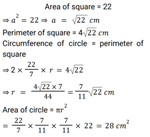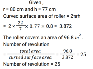 Mensuration (Railway Maths) (Part – VII)Total Questions: 501. The ratio of the area of an equilateral triangle of side x to the area of a square of side x is ? [RRB NTPC 25/01/2021 (Evening) ](d) √3 : 4(a) √3 : 1(b) √3 : 2(c) √3 : 8Correct Answer: (d) √3 : 4Solution:2. A rectangular field is to be fenced on three sides leaving a side of 30 ft. uncovered. If the area of the field is 690 sq. ft how many feet of fencing will be required ? [RRB NTPC 27/01/2021 (Morning)](a) 46(b) 59(c) 76(d) 69Correct Answer: (c) 76Solution:If the length of one side is 30 ft and the area is 690 ft 2 ⇒ Length of another side = 23ft Now, length of fencing required for the three sides = 23 + 23 + 30 = 76 ft3. The ratio of the length to the breadth of a rectangular field is 7 : 6. If the breadth is 35 m less than the length, then the perimeter of the field is : [RRB NTPC 27/01/2021 (Morning)](a) 910 m(b) 930 m(c) 940 m(d) 920 mCorrect Answer: (a) 910 mSolution:Let length and breadth be 7x and 6x respectively. ATQ, 7x - 6x = 35 ⇒ x = 35 Perimeter = 2(7x + 6x) = 26x = 26 × 35 = 910 m4. Find the cost of fencing a square plot of land with an area of 11025 m², at the rate of Rs. 85 per metre. [RRB NTPC 27/01/2021 (Evening)](a) Rs. 35,800(b) Rs. 35,000(c) Rs. 36,000(d) Rs. 35,700Correct Answer: (d) Rs. 35,700Solution:5. A cord is in the form of a square enclosing an area of 22 cm². If the same cord is formed into a circle, then find the area enclosed by the circle. [Take π = 22/7] [RRB NTPC 27/01/2021 (Evening)](a) 26 cm²(b) 20 cm²(c) 28 cm²(d) 30 cm²Correct Answer: (c) 28 cm²Solution:6. If one envelope requires a paper size of 18 cm × 12 cm, then how many envelopes can be made out of a sheet of paper of size 72 cm × 48 cm? [RRB NTPC 27/01/2021 (Evening)](a) 16(b) 4(c) 8(d) 12Correct Answer: (a) 16Solution:7. The area of trapezium is 540 m². If the parallel sides are 30 m and 24 m in length, then find the distance between them. [RRB NTPC 27/01/2021 (Evening)](a) 20 m(b) 22 m(c) 24 m(d) 25 mCorrect Answer: (a) 20 mSolution:Area of the trapezium = 1/2 (sum of parallel sides) × (distance between both parallel sides) ⇒ 1/2 (30 + 24) × d = 540 ⇒ 27d = 540 ⇒ d = 20 m8. Find the area of a trapezium whose parallel sides are 10 cm and 20 cm and non-parallel sides are equal to 10 cm. [RRB NTPC 28/01/2021 (Morning)](a) 70√3 cm²(b) 75√3 cm²(c) 60√3 cm²(d) 65√3 cm²Correct Answer: (b) 75√3 cm²Solution:9. The radius of a 80 cm wide road roller is 77cm. Find the number of revolutions that the roller will take tocover an area of 96.8 m². [Take π = 22/7] [RRB NTPC 28/01/2021(Morning) ](a) 25(b) 20(c) 24(d) 22Correct Answer: (a) 25Solution:10. If the total surface area of a cube is 864 m², then its volume is: [RRB NTPC 28/01/2021 (Evening) ](a) 1728 m³(b) 1727 m³(c) 1726 m³(d) 1729 m³Correct Answer: (c) 1726 m³Solution:Submit Quiz12345Next »