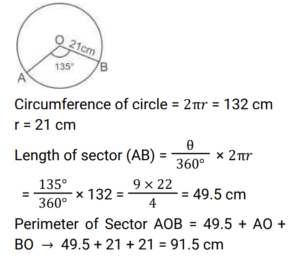 7. Circumference of a circle is 132 cm. What is the perimeter of its sector whose central angle is 135°? [RRB JE 26/05/2019 (Afternoon)]