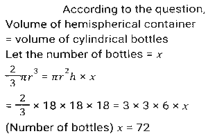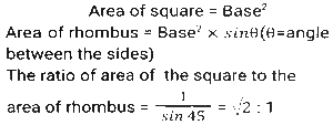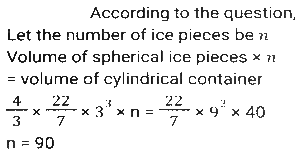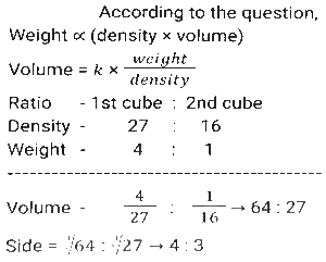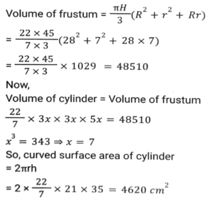 MensurationTotal Questions: 5021. Some ice pieces, spherical in shape, of diameter 6 cm are dropped in a cylindrical container containing some juice and are fully submerged. If the diameter of the container is 18 cm and level of juice rises by 40 cm, then how many ice pieces are dropped in the container? [SSC CPO 05/10/2023 (3rd Shift)](a) 90(b) 80(c) 85(d) 95Correct Answer: (a) 90Solution:22. Some medicine in liquid form is prepared in a hemispherical container of diameter 36 cm. When the container is full of medicine, the medicine is transferred to small cylindrical bottles of diameter 6 cm and height 6 cm. How many bottles are required to empty the container? [SSC CPO 04/10/2023 (2nd Shift)](a) 70(b) 75(c) 72(d) 76Correct Answer: (c) 72Solution:23. The length and the breadth of the floor of a rectangular hall are 126 feet and 90 feet, respectively. What will be the area (in square feet) of each of the largest identical square tiles that can be used to tile this floor in a way that no part of the floor remains uncovered? [SSC CPO 03/10/2023 (3rd Shift)](a) 196(b) 256(c) 324(d) 484Correct Answer: (c) 324Solution:24. The radii of the ends of a frustum of a solid right-circular cone 45 cm high are 28 cm and 7 cm. If this frustum is melted and reconstructed into a solid right circular cylinder whose radius of base and height are in the ratio 3:5, find the curved surface area (in cm²) of this cylinder. [Use π = 22/7.] [SSC CPO 03/10/2023 (1st Shift)](a) 4610(b) 4620(c) 4580(d) 4640Correct Answer: (b) 4620Solution:25. A square and a rhombus have the same base and the rhombus is inclined at 45°, then what will be the ratio of the area of the square to the area of the rhombus? [SSC MTS 14/09/2023 (3rd Shift)](a) √3:1(b) 1:√3(c) √2:√3(d) √2:1Correct Answer: (d) √2:1Solution:26. A closed wooden box measures externally 10 cm long. 8 cm broad and 6 cm high. If the thickness of the wood is 0.5 cm, then the volume of wood required is [SSC MTS 14/09/2023 (3rd Shift)](a) 165 cm³(b) 300 cm³(c) 230 cm³(d) 150 cm³Correct Answer: (a) 165 cm³Solution:27. The weight of a cube varies directly as the product of its volume and its density. The ratio of densities of the materials of the first cube and second cube is 27:16. If the weight of the first cube is 4 times the weight of the second cube, then what is the ratio of the edges of the first cube and second cube? [SSC MTS 14/09/2023 (2nd Shift)](a) 2:3(b) 3:2(c) 3:4(d) 4:3Correct Answer: (d) 4:3Solution:28. The weight of a circular disc varies directly as the product of the square of the radius and its thickness. Two identical/similar discs have their thickness in the ratio of 16: 9. What is the ratio of their radii if the weight of the first is four times that of the second ? [SSC MTS 12/09/2023 (3rd Shift)](a) 3:2(b) 2:3(c) 1:2(d) 2:1Correct Answer: (a) 3:2Solution:29. A hemispherical dome of a building needs to be painted. If the circumference of the base of the dome is 154 cm, then find the cost of painting it if the cost of painting is ₹4 per 100 cm² (use π = 22/7). [SSC CHSL 10/08/2023 (4th Shift)](a) ₹150.92(b) ₹150.66(c) ₹105.29(d) ₹105.66Correct Answer: (a) ₹150.92Solution:30. The area of a sector of a circle is 616cm² with a central angle of 10º . The radius of the circle is_______ . (use π = 22/7) [SSC CHSL 08/08/2023 (2nd Shift)](a) 84 cm(b) 21 cm(c) 48 cm(d) 28 cmCorrect Answer: (a) 84 cmSolution:Submit Quiz« Previous12345Next »