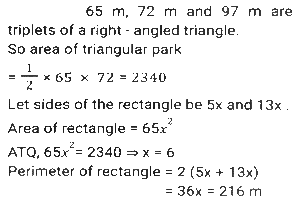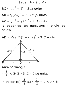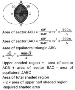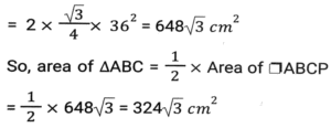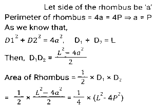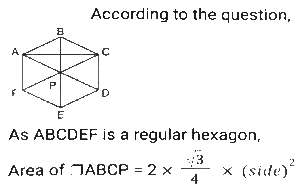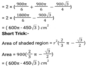 MensurationTotal Questions: 5041. If the length of a certain rectangle is decreased by 4 cm and breadth is increased by 2 cm, it would result in a square of the same area. What is the perimeter of the original rectangle? [SSC CGL 06/12/2022 (1st Shift)](a) 15 cm(b) 24 cm(c) 20 cm(d) 10 cmCorrect Answer: (c) 20 cmSolution:42. Two identical circles each of radius 30 cm intersect each other such that the circumference of each one passes through the center of the other. What is the area of the intersecting region? [SSC CGL 03/12/2022 (4th Shift)](a) 400π - 250√3 cm²(b) 300π - 150√3 cm²(c) 500π - 350√3 cm²(d) 600π - 450√3 cm²Correct Answer: (d) 600π - 450√3 cm²Solution:43. If the sum of the diagonals of a rhombus is L and the perimeter is 4P, find the area of the rhombus? [SSC CPO 11/11/2022 (Morning)](a)(b)(c)(d)Correct Answer: (b)Solution:44. Water is flowing through a cylindrical canal with an internal diameter of 7 m at the speed of 18 km/h. Find the volume of water flowing through the canal in 30 minutes. (take π = 22/7) [SSC CPO 09/11/2022 (Afternoon)](a) 3,76,500 m³(b) 3,56,500 m³(c) 3,66,500 m³(d) 3,46,500 m³Correct Answer: (d) 3,46,500 m³Solution:45. ABCDEF is a regular hexagon. Side of the hexagon is 36 cm. What is the area of the triangle ABC ? [SSC CGL Tier II (08/08/2022)](a) 324√3 cm²(b) 360√3 cm²(c) 240√3 cm²(d) 192√3 cm²Correct Answer: (a) 324√3 cm²Solution: 46. The frustum of a right circular cone has the radius of the base as 5 cm, radius of the top as 3 cm, and height as 6 cm. What is its volume? [SSC CHSL 27/05/2022 (Afternoon)](a) 98π cm³(b) 100π cm³(c) 96π cm³(d) 90π cm³Correct Answer: (a) 98π cm³Solution:47. Simplify [SSC CGL Tier II (03/02/2022) ](a) 5/2 ab(b) 3ab(c) 4ab(d) 3/2 abCorrect Answer: (d) 3/2 abSolution:48. A square park has been divided into two rectangles of equal area. If the perimeter of each of these rectangles is 39 m, then what will be the perimeter of the square park ? [SSC CHSL 09/08/2021 (Afternoon)](a) 104 m(b) 39 m(c) 78 m(d) 52 mCorrect Answer: (d) 52 mSolution:49. The circumference of a circle is 'aπ' units and the area of the circle is 'bπ' square units. If a:b is equal to 4:5, then the radius of the circle is: [SSC CHSL 06/08/2021 (Evening)](a) 3 cm(b) 2.5 cm(c) 5 cm(d) 2 cmCorrect Answer: (b) 2.5 cmSolution:50. The area of a triangular field whose sides are 65m, 72m and 97m is equal to the area of a rectangular park whose sides are in the ratio of 5:13. What is the perimeter (in m) of the rectangular park? [SSC CHSL 19/04/2021 (Morning)](a) 108(b) 180(c) 216(d) 144Correct Answer: (c) 216Solution:Submit Quiz« Previous12345