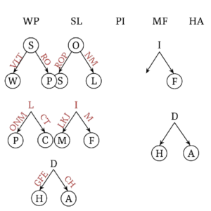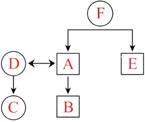 2. A and E are sons of F.