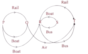 Five cities P, Q, R, S and T are connected by different modes of transport as follows: