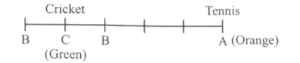 Six boxes A, B, C, D, E and F have been painted with six different colours viz., violet, indigo, blue, green, yellow and orange and arranged from left to right (not necessarily either kept or painted with the colours in the same order). Each box contains a ball of any one of the following six games: cricket, hockey, tennis, golf, football and volleyball (not necessarily in the same order). The golf ball is in violet box and is not in the box D. The box A which contains tennis ball is orange in colour and is at the extreme right. The hockey ball is neither in box D nor in box E. The box C having cricket ball is painted green. The hockey ball is neither in the box painted blue nor in the box painted yellow. The box C is fifth from right and next to box B. The box B contains volleyball. The box containing the hockey ball is between the boxes containing golf ball and volleyball.