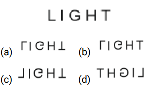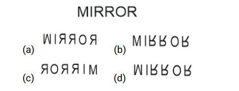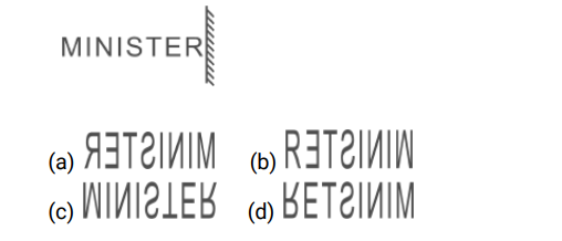 Mirror / Water Image – Railway ReasoningTotal Questions: 5121. Select the water image of the given figure from the options. [RPF S.I. 19/12/2018 (Evening)](a)(b)(c)(d)Correct Answer: (a)Solution:22. Choose the option which correctly represents the mirror image of the word shown. [RPF S.I. 24/12/2018 (Morning)](a)(b)(c)(d)Correct Answer: (b)Solution:23. Choose the option which correctly represents the mirror image of the word shown. [RPF S.I. 05/01/2019 (Morning)](a)(b)(c)(d)Correct Answer: (c)Solution:24. Choose the option which correctly represents the mirror image of the word shown. [RPF S.I. 06/01/2019 (Afternoon)](a)(b)(c)(d)Correct Answer: (a)Solution:25. Choose the correct water image of the given question from the given options : [RPF S.I. 10/01/2019 (Morning)](a)(b)(c)(d)Correct Answer: (a)Solution:26. Choose the option which correctly represents the mirror image of the word shown. [RPF S.I. 10/01/2019 (Afternoon)](a)(b)(c)(d)Correct Answer: (b)Solution:27. Choose the correct water image of the given question from the given options [RPF S.I. 10/01/2019 (Afternoon)](a)(b)(c)(d)Correct Answer: (d)Solution:28. Choose the option which correctly represents the mirror image of the figure shown. [RRB ALP 09/08/2018 (Afternoon)](a)(b)(c)(d)Correct Answer: (d)Solution:29. Choose the option which correctly represents the mirror image of the figure shown. [RRB ALP 10/08/2018 (Afternoon)](a) B(b) D(c) C(d) ACorrect Answer: (c) CSolution:30. Choose the option which correctly represents the mirror image of the word shown. [RRB ALP 13/08/2018 (Morning)](a)(b)(c)(d)Correct Answer: (b)Solution:Submit Quiz« Previous123456Next »