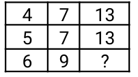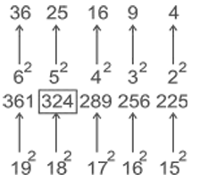 Missing Number – Railway Reasoning part – 2Total Questions: 5011. Find the missing number to complete the following sequence: [RRB NTPC 20/01/2021 (Morning)](a) 36(b) 35(c) 24(d) 26Correct Answer: (a) 36Solution:Logic :- (Previous No × 2) in eachcolumn = Next Number.For the first column : 21 × 2 = 42 42 × 2 = 84 For the third column : 9 × 2 = 18 18 × 2 = 36 So, for the second column : 18 × 2 = 36 36 × 2 = 72 i.e. the correct answer is = 3612. Find the missing number to complete the following sequence: [RRB NTPC 20/01/2021 (Morning)](a) 90(b) 1110(c) 98(d) 109Correct Answer: (d) 109Solution:Logic : The given number are written in the reverse numerical order in pair of 2Order:- 12, 34, 56, 78, 910, 1112Reverse order is :- 21, 43, 65, 87, 109, 121113. Find the missing number to complete the following sequence: [RRB NTPC 22/01/2021 (Morning)](a) 13(b) 12(c) 24(d) 9Correct Answer: (d) 9Solution:( 13 + 7 ) ÷ 5 = 4( 13 + 7 ) ÷ 4 = 5( x + 9 ) ÷ 3 = 6 ⇒ x = 914. Find the missing number to complete the following sequence: [RRB NTPC 22/01/2021 (Morning)](a) 22(b) 64(c) 32(d) 48Correct Answer: (b) 64Solution:2³ = 81³ = 13³ = 27So that 4³ = 6415. Study the given pattern carefully and select the number that represents the value of x. [RRB NTPC 22/01/2021 (Evening)]36 25 16 9 4 361 x 289 256 225(a) 336(b) 324(c) 316(d) 298Correct Answer: (b) 324Solution:Logic :- Square of consecutive numbers in descending order. 16. Find the missing number to complete the following sequence: [RRB NTPC 22/01/2021 (Evening)](a) 5(b) 25(c) 625(d) 125Correct Answer: (c) 625Solution:Logic : In triangle corners, 1st number square = 2nd number , 2nd number square = 3rd number17. Find the missing number to complete the following sequence: [RRB NTPC 22/01/2021 (Evening)](a) B(b) O(c) Z(d) XCorrect Answer: (c) ZSolution:Logic: The letter in the middle is the sum of the opposite letters. Y + A = Z E + U = Z J + P = Z18. Find the missing number to complete the following sequence: [RRB NTPC 23/01/2021 (Morning)](a) 2(b) 6(c) 4(d) 8Correct Answer: (c) 4Solution: Logic : 6 × 2 = 12 ⇒ 12² = 1445 × 3 = 15 ⇒ 15² = 2253 × 2 = 6 ⇒ 6² = 364 × 4 = 16 ⇒ 16² = 25619. Find the missing number to complete the following sequence: [RRB NTPC 23/01/2021 (Morning)]1 + 2 + 3 + 5 = 39 2 + 3 + 4 + 5 = 54 1 + 3 + 4 + 5 = ?(a) 51(b) 50(c) 55(d) 56Correct Answer: (a) 51Solution:1² + 2² + 3² + 5² = 392² + 3² + 4² + 5² = 541² + 3² + 4² + 5² = 1 + 9 + 16 + 25 = 5120. Find the missing number to complete the following sequence: [RRB NTPC 23/01/2021 (Evening)](a) 5,4(b) 4,5(c) 2,10(d) 10, 2Correct Answer: (c) 2,10Solution:Logic : (Taking first term as 2) × (second term) = Middle termSo, according to the logic option ‘c’ follows.2 × 10 = 20Submit Quiz« Previous12345Next »