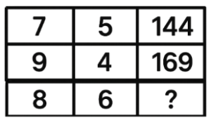 Missing Number (SSC MTS 2019 Tier-1)Total Questions: 2821. Find the missing number? [SSC MTS 16/08/2019 (Evening)](a) 71(b) 45(c) 38(d) 51Correct Answer: (d) 51Solution:The pattern followed here is:Here, in the 1st column, 1st term - (2 x 2nd term) = 3rd term37 - (5 x 2) = 37 - 10 = 27.142 - (27 x 2) = 142 - 54 = 88.87 - (18 x 2) = 87 - 36 = 51.Hence, "51" is the correct answer.22. Find the missing number? [SSC MTS 19/08/2019 (Evening)](a) 210(b) 140(c) 174(d) 198Correct Answer: (c) 174Solution:The pattern followed here is:For row: -4 x 4 = 16 x 4 = 64 - 1 = 638 x 6 = 48 x 6 = 288 - 1 = 2877 x 5 = 35 x 5 = 175 - 1 = 174Hence, "174" is the correct answer.23. Find the missing number? [SSC MTS 20/08/2019 (Evening)](a) 225(b) 176(c) 256(d) 196Correct Answer: (d) 196Solution:The pattern followed here is:(1st term + 2nd term) = (Total number) ² = 3rd number7 + 5 = 12, (12) ^ 2 = 1449+4=13, (13) ^ 2 = 169Similarly, 8+6=14, (14) ^ 2 = 196Hence, "196" is the correct answer.24. Find the missing number? [SSC MTS 20/08/2019 (Evening)](a) 90(b) 64(c) 67(d) 79Correct Answer: (c) 67Solution:The pattern followed here is:(1st term * 3) + 1 = (2nd term * 3) + 1 = 3rd term(8 × 3) + 1 = 25, (25 × 3) + 1 = 76(5 × 3) + 1 = 16, (16 × 3) + 1 = 49Similarly, (7 × 3) + 1 = 22 (22 × 3) + 1 = 67Hence, "67" is the correct answer.25. Find the missing number? [SSC MTS 21/08/2019 (Morning](a) 101(b) 111(c) 144(d) 121Correct Answer: (d) 121Solution:The pattern followed here is:Here, in all rows: (sum of 1st & 2nd term) ² = 3rd term.6+7= 13, 13×13 = 16910+9=19, 19 × 19 = 3618+3=11, 11 × 11 = 121Hence, "121" is the correct answer.26. Find the missing number? [SSC MTS 21/08/2019 (Afternoon)](a) 6b) 3(c) 9(d) 5Correct Answer: b) 3Solution:The pattern followed here is:logic:- In all rows√1st No. × 3rd No. = 2nd No. 1st Row :- √11 × 11 = √121 = 11 2nd Row :- √4 × 9 = √36 = 6 Similarly, 3rd Row :- √27 × ? = 9 ⇒ ? = 3Hence, "3" is the correct answer.27. Find the missing number? [SSC MTS 21/08/2019 (Evening)](a) 104(b) 112(c) 96(d) 108Correct Answer: (a) 104Solution:The pattern followed here is:1st row: 7(13 - 1) = 7 × 12 = 842nd row: 4(19 - 1) = 4 × 18 = 72Similarly, 3rd row: 8(14 - 1) = 8 × 13 = 104Hence, "104" is the correct answer.28. Find the missing number? [SSC MTS 22/08/2019 (Afternoon)](a) 29(b) 58(c) 50(d) 72Correct Answer: (b) 58Solution:The pattern followed here is:(Difference of 1st & 2nd term) x 2 = 3rd term.(86 - 49) 2 = 74(105 - 75) 2 = 60Similarly, (93 - 64) 2 = 58Hence, "58" is the correct answerSubmit Quiz« Previous123