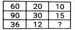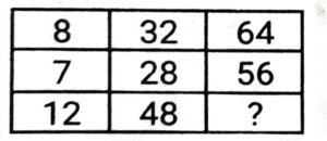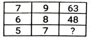Missing Number (SSC MTS 2022 Tier -1)Total Questions: 2421. Find the missing number? [S.S.C MTS 16/06/2023 (Evening)](a) 215(b) 179(c) 308(d) 224Correct Answer: (d) 224Solution:The pattern followed here is :First number × Second number = Third number(15, 12, 180) → 15 × 12 = 180(18, 13, 234) → 18 × 13 = 234Similarly,(7, 32, ?) → 7 × 32 = 224Hence, "224" is the correct answer.22. Find the missing number? [S.S.C MTS 19/06/2023 (Afternoon)](a) 96(b) 48(c) 58(d) 55Correct Answer: (a) 96Solution:The pattern followed here is :(First number) × 4 = Second number(Second number) × 2 = Third numberFirst row → 8 × 4 = 32 & 32 × 2 = 64Second row → 7 × 4 = 28 & 28 × 2 = 56Similarly,Third row → 12 × 4 = 48 & 48 × 2 = 96Hence, "96" is the correct answer.23. Find the missing number? [S.S.C MTS 19/06/2023 (Evening)](a) 28(b) 35(c) 42(d) 49Correct Answer: (b) 35Solution:The pattern followed here is :(First number) × (Second number) = Third numberFirst row → (7 × 9) = 63Second row → (6 × 8) = 48Similarly,Third row → (5 × 7) = 35Hence, "35" is the correct answer.24. Find the missing number? [S.S.C MTS 20/06/2023 (Morning)](a) 6(b) 8(c) 5(d) 4Correct Answer: (a) 6Solution:The pattern followed here is :(2nd number + 3rd number) × 2 = 1st number(60, 20, 10) → (20 + 10) × 2 = 60(90, 30, 15) → (30 + 15) × 2 = 90Similarly,(36, 12, ?) → (12 + 6) × 2 = 36Hence, "36" is the correct answer.Submit Quiz« Previous123