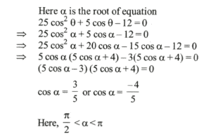 Let α be the root of the equation 2cos² θ + 5cos θ - 12 = 0, where π/2 < α < π.