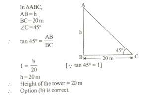 5. The angle of elevation of the top of a tower from a point 20 m away from its base is 45°. What is the height of the tower?