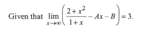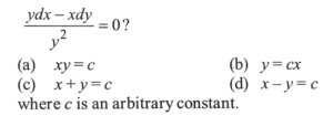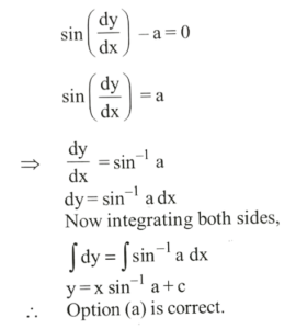 NDA/NA SOLVED PAPER 2015-I (MATHEMATICS)Total Questions: 12061. What is the value of A?(a) -1(b) 1(c) 2(d) 4Correct Answer: (c) 2Solution: 62. What is the value of B?(a) -1(b) 1(c) 2(d) 4Correct Answer: (a) -1Solution: 63. What is the value of A?(a) -1(b) 1(c) 2(d) 3Correct Answer: (b) 1Solution:64. What is the value of B?(a) -1(b) 3(d) -3(c) 4Correct Answer: (c) 4Solution:65. What is the solution of the differential equation(a)(b)(c)(d)Correct Answer: (b)Solution:66. What is the solution of the differential equation sin(dy/dx) - a = 0 ?(a)(b)(c)(d)Correct Answer: (a)Solution:67. What is the solution of the differential equation(a)(b)(c)(d)Correct Answer: (c)Solution:68. Solve the following equation(a)(b)(c)(d)Correct Answer: (c)Solution:69. Solve the following equation(a) 6 square units(b) 5 square units(c) 4 square units(d) 3 square unitsCorrect Answer: (d) 3 square unitsSolution: 70. Solve the following equation(a) 23 units(b) 19 units(c) 18 units(d) 21 unitsCorrect Answer: (a) 23 unitsSolution:Submit Quiz« Previous123456789101112Next »