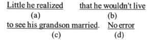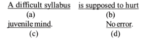 NDA/NA SOLVED PAPER 2015-II (ENGLISH)Total Questions: 5041. According to _____ sources, the Chief Minister did not consult his Cabinet Members on this issue.According to _____ sources, the Chief Minister did not consult his Cabinet Members on this issue.(a) intelligent(b) simple(c) reliable(d) fundamentalCorrect Answer: (c) reliableSolution:Reliable here refers to someone or something capable of being relied on or dependable. For example: a reliable assistant; a reliable car.42. (Questions 42-50) Each item in this section has a sentence with three underlined parts labelled (a), (b) and (c). Read each sentence to find out whether there is any error in any underlined part and indicate your answer in the Answer Sheet against the corresponding letter i.e., (a) or (b) or (c). If you find no error, your response should be indicated as (d).(a)(b)(c)(d)Correct Answer: (b)43. Find out whether there is any error in any underlined part and indicate your response.(a)(b)(c)(d)Correct Answer: (c)44. Find out whether there is any error in any underlined part and indicate your response.(a)(b)(c)(d)Correct Answer: (b)45. Find out whether there is any error in any underlined part and indicate your response.(a)(b)(c)(d)Correct Answer: (c)46. Find out whether there is any error in any underlined part and indicate your response.(a)(b)(c)(d)Correct Answer: (b)47. Find out whether there is any error in any underlined part and indicate your response.(a)(b)(c)(d)Correct Answer: (a)48. Find out whether there is any error in any underlined part and indicate your response.(a)(b)(c)(d)Correct Answer: (c)49. Find out whether there is any error in any underlined part and indicate your response.(a)(b)(c)(d)Correct Answer: (b)50. Find out whether there is any error in any underlined part and indicate your response.(a)(b)(c)(d)Correct Answer: (c)Submit Quiz« Previous12345