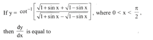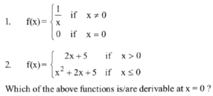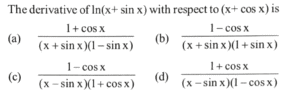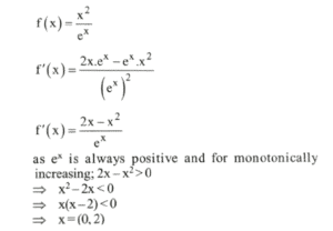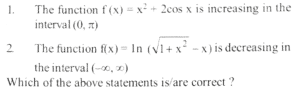 NDA/NA SOLVED PAPER 2015-II (MATHEMATICS)Total Questions: 12071. Solve the following equation(a)(b)(c)(d)Correct Answer: (d)Solution: 72. Consider the function(a) -1(b) 1(c) 0(d) 2Correct Answer: (a) -1Solution:73. Solve the following equation(a) - 1/2(b) 1/2(c) -1(d) 1Correct Answer: (c) -1Solution:74. Consider the following functions:(a) 1 only(b) 2 only(c) Both 1 and 2(d) Neither 1 nor 2Correct Answer: (b) 2 onlySolution:75. Solve the following equation(a) [0, ∞)(b) (- ∞, 0)(c) [1, ∞)(d) (- ∞, 0]Correct Answer: (b) (- ∞, 0)Solution:76. Consider the following statements :(a) 1 only(b) 2 only(c) Both 1 and 2(d) Neither 1 nor 2Correct Answer: (c) Both 1 and 2Solution: 77. Solve the following equation(a)(b)(c)(d)Correct Answer: (a)Solution:78. Solve the following equation(a) 1/2(b) 2(c) sin x + cos x(d) sin x - cos xCorrect Answer: (a) 1/2Solution: 79. The function f(x) = x²/eˣ monotonically increasing if(a) x < 0 only(b) x > 2 only(c) 0 < x < 2(d) x ∈ (- ∞, 0) ∪ (2, ∞)Correct Answer: (c) 0 < x < 2Solution:80. Solve the following equation(a) a/b(b) b/a(c) 1(d) 0Correct Answer: (d) 0Solution: Submit Quiz« Previous123456789101112Next »