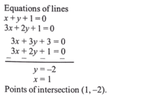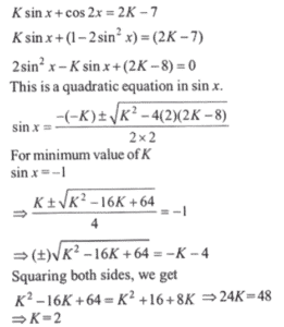 NDA/NA SOLVED PAPER 2016-I (MATHEMATICS)Total Questions: 12041. If the circles intersect at two distinct points, then which one of the following is correct?Consider the two circles (x - 1)² + (y - 3)² = r² and x²+ y² - 8x + 2y + 8 = 0(a) r = 1(b) 1 < r < 2(c) r = 2(d) 2 < r < 8Correct Answer: (d) 2 < r < 8Solution:42. What is the equation of the line passing through the point of intersection of the given lines and parallel to x-axis?Consider the two lines x + y + 1 = 0 and 3x + 2y + 1 = 0(a) y + 1 = 0(b) y - 1 = 0(c) y - 2 = 0(d) y + 2 = 0Correct Answer: (d) y + 2 = 0Solution: 43. What is the equation of the line passing through the point of intersection of the given lines and parallel to y-axis ?Consider the two lines x + y + 1 = 0 and 3x + 2y + 1 = 0(a) x + 1 = 0(b) x - 1 = 0(c) x - 2 = 0(d) x + 2 = 0Correct Answer: (b) x - 1 = 0Solution: 44. If the equation possesses solution, then what is the minimum value of k?Consider the equation k sin x + cos 2x = 2k - 7(a) 1(b) 2(c) 4(d) 6Correct Answer: (b) 2Solution:45. If the equation possesses solution, then what is the maximum value of k ?Consider the equation k sin x + cos 2x = 2k - 7(a) 1(b) 2(c) 4(d) 6Correct Answer: (d) 6Solution: 46. Solve the following equation(a) 1(b) In a(c) 1 - a⁻¹(d) Limit does not existCorrect Answer: (b) In aSolution:47. Solve the following equation(a) 0(b) In a(c) 1 - a⁻¹(d) Limit does not existCorrect Answer: (c) 1 - a⁻¹Solution:48. What is z₁ + z₂ + z₃ equal to?(a) i(b) -i(c) 0(d) 1Correct Answer: (c) 0Solution: 49. Consider the following statements:1. z₁ z₂ z₃ is purely imaginary. 2. z₁ z₂ + z₂ z₃ + z₃ z₁ is purely real.Which of the above statements is/are correct?(a) 1 only(b) 2 only(c) Both 1 and 2(d) Neither 1 nor 2Correct Answer: (c) Both 1 and 2Solution: 50. Which one of the following is correct?(a) in AP only(b) in GP only(c) in both AP and GP(d) neither in AP nor in GPCorrect Answer: (c) in both AP and GPSolution: Submit Quiz« Previous123456789101112Next »