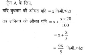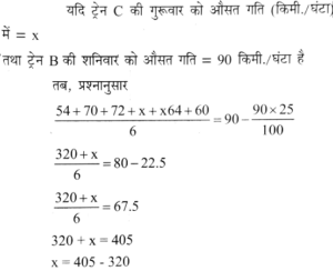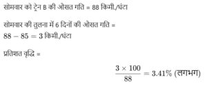2. For train A, if the average speed on Saturday is 20% more than that on Wednesday and the mean of the average speed over all the six days is 67 km/hour then what is the average speed on Saturday?/ट्रेन A के लिए, यदि शनिवार की औसत गति उसकी बुधवार की औसत गति की अपेक्षा 20% अधिक है और सभी छह दिनों की औसत गतियों का माध्य 67 किमी/घंटा है तो शनिवार को औसत गति कितनी होगी?