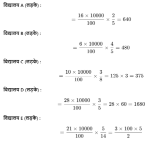 स्कूल B में लड़कियाँ = (6 × 10000)/100 × 1/5 = 6 × 20 = 120