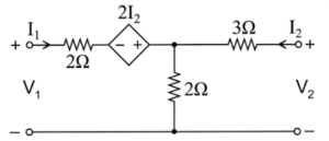 Solution:Under open-circuit conditions at port 2 (I₂ = 0), analyzing the node voltages and currents shows: