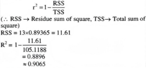 5. In the two variable regression model, where the number of observation is 13, the variance of error term is 0.893652 and TSS is 105.1188. Find the coefficient of determination (r²).
