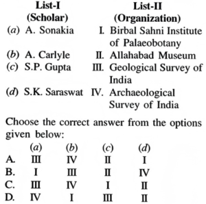 S.P.. Gupta (c) is linked to the Allahabad Museum (II). Museums like the Allahabad Museum house historical artifacts, antiquities, and other essential records of India's rich cultural and historical heritage.