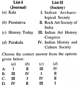 Solution:A. Sonakia (a) was associated with the Geological Survey of India (III). The Geological Survey of India plays an instrumental role in conducting geological studies, and researchers like Sonakia have contributed to the understanding of geological aspects, including the study of fossils, minerals, and other geological attributes.