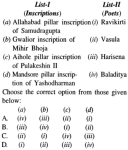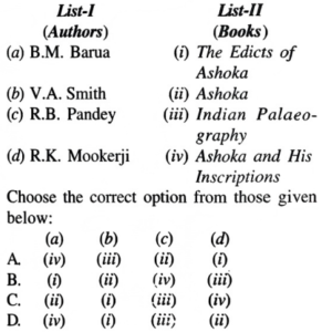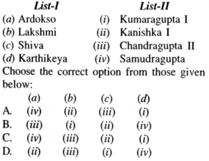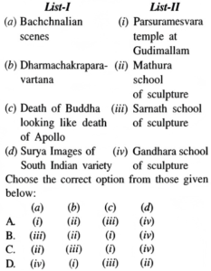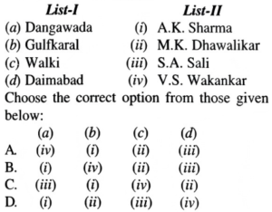 NTA UGC NET/JRF Exam June-2019 ARCHAEOLOGYTotal Questions: 10091. Match List-I with List-II:A.B.C.D.Correct Answer: B.92. Match List-I with List-II:A.B.C.D.Correct Answer: A.93. Match List-I with List-II:A.B.C.D.Correct Answer: B.94. Match List-I with List-II:A.B.C.D.Correct Answer: D.95. Match List-I with List-II:A.B.C.D.Correct Answer: A.96. Match List-I with List-II:A.B.C.D.Correct Answer: B.97. Match List-I with List-II:A.B.C.D.Correct Answer: C.98. Match List-I with List-II:A.B.C.D.Correct Answer: C.99. Match List-I with List-II:A.B.C.D.Correct Answer: A.100. Match List-I with List-II:A.B.C.D.Correct Answer: C.Submit Quiz« Previous12345678910