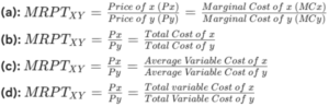 This is a condition of Pareto optimality marginal rate of product transformation. The marginal rate of product transformation or MRPT, is also known as the slope of transformation curves or opportunity cost.