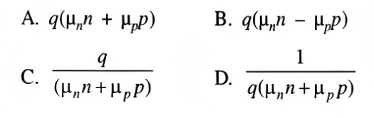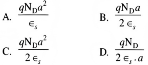 NTA UGC NET/JRF Exam, June -2021 (Electronic Science)Total Questions: 1001. For semiconductor, with both electrons and holes as carriers, the resistivity can be expressed as:A.B.C.D.Correct Answer: D.2. The band structure of a crystalline solid, that is, the energy momentum (E-K) relationship, is usually obtained by solving:A. Laplace EquationB. Poisson EquationC. Schrodinger EquationD. Maxwell EquationCorrect Answer: C. Schrodinger Equation3. The Schottky effect is the image force induced lowering of the potential energy for charge carrier emission when an electric field is applied. The attractive force called image force is:A.B.C.D.Correct Answer: C.4. In JFET, the Pinch-off Voltage can be defined as:A.B.C.D.Correct Answer: C.5. The desired property of gate and interconnection metallization is:A. High resistivityB. Low resistivityC. Low conductivityD. Large stressCorrect Answer: B. Low resistivity6. In a silicon oxidation model, B/A is the linear rate constant and t accounts for the shift in the time coordinate to account for the presence of the initial oxide layer, then the linear law is represented as:A.B.C.D.Correct Answer: C.7. In a silicon oxidation model, if Cɢ and Cₛ are the oxidant concentration in the bulk of the gas and oxidant concentration adjacent to the oxide surface, respectively, then the gas phase flux are: (hɢ is the gas phase mass transfer coefficient)A.B.C.D.Correct Answer: C.8. If Cₛ and Cₗ are the equilibrium concentration of impurities in the solid and liquid near the interface respectively, then for dilute solutions encountered in silicon growth, an equilibrium segregation coefficient kₐ may be defined as:A.B.C.D.Correct Answer: A.9. The circuit shown in the following figure is initially under steady-state condition. The switch is moved from position 1 to position 2 at t = 0. The current after switching will be:A. 2e-5⁻⁵ᵗAВ. 1- 2e⁻⁵ᵗAC. 1 + 2⁻⁵ᵗAD. 2e5⁻⁵ᵗA.E. (*)Correct Answer: E. (*)10. A differential equation is given as x(t + 2) + 3x(t + 1) + 2x(t) = 0; x(0) = 0, x(1) = 1. The solution of this equation will be:A. x(KT) = (-1)ᴷ + (2)ᴷB. x(KT) = (-1)ᴷ - (2)ᴷC. x(KT) = (−1)ᴷ + (−2)ᴷD. x(KT) = (−1)ᴷ - (−2)ᴷCorrect Answer: D. x(KT) = (−1)ᴷ - (−2)ᴷSubmit Quiz12345678910Next »