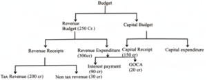 100 crore. Out of total revenue expenditure of Rs. 300 crore, interest payments was Rs. 90 crore and grants fro creation of capital assets was Rs. 20 crore. Out of total capital expenditure of Rs. 100 crore, scheme expenditure was Rs.