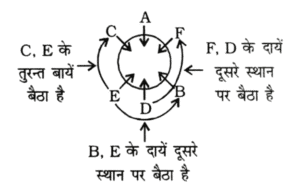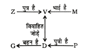 NTPC CBT-2 GROUP ‘D’ 09.05.2022 (प्रथम पाली)Total Questions: 3211. दिए गए संख्या-युग्मों में से प्रत्येक में, दूसरी संख्या, पहली संख्या पर एक निश्चित गणितीय संक्रिया करके प्राप्त की जाती है।निम्नलिखित में से तीन संख्या-युग्म एक समान पैटर्न का पालन करते हैं, और इस प्रकार एक समूह बनाते हैं। उस संख्या-युग्म का चयन करें, जो उस समूह से संबंधित नहीं है।(1) 22, 34(2) 11, 12(3) 25, 42(4) 17, 24Correct Answer: (3) 25, 42Solution:उपर्युक्त पैटर्न में जब पहली संख्या के दो गुणा को 10 से घटाया जाता है तो दूसरी संख्या प्राप्त होती है।12. दिए गए कथनों और निष्कर्षों को ध्यानपूर्वक पढ़ें। कथनों में दी गई जानकारी को सत्य मानते हुए विचार करें, भले ही वह सामान्यतः ज्ञात तथ्यों से भिन्न प्रतीत होती हो, और तय करें कि दिए गए निष्कर्षों में से कौन-से कथनों का तार्किक रूप से पालन करते हैं?कथन :सभी ऊँट गधे हैं।कुछ बिल्लियाँ ऊँट हैं।सभी डॉल्फिन बिल्लियाँ हैं।निष्कर्ष :Ⅰ. सभी डॉल्फिन गधे हैं।II. कुछ डॉल्फिन गधे हैं।III. कुछ गधे बिल्लियाँ हैं।IV. सभी बिल्लियाँ गधे हैं।(1) केवल निष्कर्ष IV पालन करता है।(2) केवल निष्कर्ष III पालन करता है।(3) निष्कर्ष I और III दोनों पालन करते हैं।(4) निष्कर्ष II और III दोनों पालन करते हैं।Correct Answer: (2) केवल निष्कर्ष III पालन करता है।Solution:उपर्युक्त वेन आरेख से केवल निष्कर्ष (iii) कुछ गदहे, बिल्लियाँ है; कथन का पालन करता है।13. एक समूह में पाँच लड़कियाँ हैं, प्रत्येक की लंबाई अलग-अलग है। H केवल E से छोटी है। F, P के जितनी लंबी नहीं है। P, G से छोटी है। उनमें से कौन सबसे छोटी है?(1) G(2) E(3) F(4) PCorrect Answer: (3) FSolution:लम्बाई के अनुसार,चूँकि H केवल E से छोटी है यानि H अन्य तीनों लड़कियों से बड़ी है।F < P < G < H < Eउपर्युक्त संबंध से F सभी में सबसे छोटी है।14. 6 व्यक्तियों - A, B, C, D, E और F का एक समूह है (उनका इसी क्रम में होना अनिवार्य नहीं हैं।) D, A और E से लंबा है। F, B और C से लंबा है। E, F से लंबा है। A, F से लंबा है। निम्नलिखित में से कौन सबसे छोटा व्यक्ति हो सकता है?(1) C या F(2) B या C(3) A या C(4) B या ECorrect Answer: (2) B या CSolution:लम्बाई के अनुसार,D > A D > E F > B F > C E > F, A > Fउपर्युक्त संबंध से,D > A > E > F > B > CयाD > A > E > F > C > Bअतः B या C सबसे छोटे व्यक्ति हो सकते है।15. गिरिधर एक मंदिर में था और उसका मुख पश्चिम की ओर था। वह टोकन लेने के लिए दक्षिणावर्त दिशा में 45° मुड़ता है, फिर दक्षिणावर्त दिशा में और 180° मुड़ता है। फिर वह वामावर्त दिशा में 45° मुड़ता है। अब उसका मुख किस दिशा की ओर है?(1) दक्षिण-पश्चिम(2) पश्चिम(3) उत्तर-पश्चिम(4) पूर्वCorrect Answer: (4) पूर्वSolution:स्थिति 1 → गिरधर का मुख पश्चिम ओर है।स्थिति 2 → घड़ी की दिशा में 45° मुड़ने परस्थिति 3 → स्थिति 2 से 180° घड़ी की दिशा में मुड़ने परस्थिति 4 → स्थिति 3 से 45° घड़ी के विपरीत दिशा में मुड़ने परवर्तमान में गिरधर का मुख पूर्व की ओर है।16. छह व्यक्ति A, B, C, D, E और F एक वृत्ताकार मेज के परितः केन्द्र की ओर म