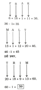 उपर्युक्त बैठने के क्रम से 'F' के दाएँ दुसरे स्थान पर 'E' बैठा है।