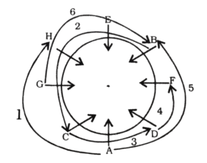 (1) 'H', A के बाई ओर तीसरे स्थान पर बैठा है