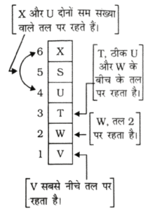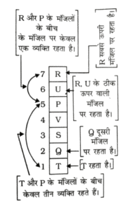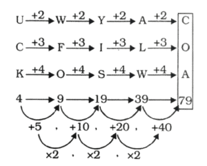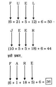 NTPC CBT-2 GROUP ‘D’ 17.08.2022 (द्वितीय पाली)Total Questions: 2711. एक निश्चित कूट भाषा में, 'FUEL' को '50' और 'JEER' को '44' लिखा जाता है। उसी कूट भाषा में 'FARE' को किस प्रकार लिखा जाएगा?(1) 36(2) 40(3) 34(4) 38Correct Answer: (1) 36Solution:12. यदि '+' का अर्थ '÷' है, '-' का अर्थ '×' है, '×' का अर्थ '+' है, '÷ ' का अर्थ '-' है, तो निम्नलिखित समीकरण में प्रश्न चिन्ह (?) के स्थान पर कितना मान आएगा?16 + 4 - 8 ÷ 3 × 2 = ?(1) 23(2) 14(3) 22(4) 31Correct Answer: (4) 31Solution:13. यदि संख्या 34135278 के प्रत्येक विषम अंक में 2 जोड़ा जाता है, और प्रत्येक सम अंक से 1 घटाया जाता है, तो बाएँ से तीसरे और दाएँ से तीसरे अंकों का योग क्या होगा?(1) 4(2) 3(3) 1(4) 7Correct Answer: (1) 4Solution:14. उस पद का चयन कीजिए, जो दी गई श्रृंखला में प्रश्न चिन्ह (?) के स्थान पर आकर श्रृंखला को तार्किक रूप से पूर्ण करेगा?UCK - 4, WFO-9, YIS-19, ALW-39, ?(1) COA-79(2) BOA-76(3) COA-77(4) CPB-79Correct Answer: (1) COA-79Solution:15. निम्न अनुक्रम का ध्यानपूर्वक अध्ययन कीजिए, और उसके आधार पर पूछे गए प्रश्न का उत्तर दीजिए।(बाएं) 3 ^ % 7 2 4 £ 3 ¥ 4 & @ 8 8 & 6 @ 1 (दाएँ)उपरोक्त अनुक्रम में ऐसी कितनी संख्याएँ हैं, जिनमें से प्रत्येक के ठीक बाद एक प्रतीक है, और ठीक पहले भी एक प्रतीक है?(1) 2(2) 1(3) 3(4) 4Correct Answer: (3) 3Solution:(बायां) 3 ^ % 7 2 4 £ 3 ¥ 4 & @ 8 8 & 6 @ 1 (दायां)उपर्युक्त अनुक्रम में 3 संख्याएं ऐसी हैंजिसके ठीक पहले एक एवं ठीक बाद एक चिह्न हैं।16. निम्नांकित चित्र में, आयत विद्यार्थियों को निरूपित करता है, वृत्त लड़कियों को निरूपित करता है, अंडाकृति कला संकाय को निरूपित करती है, और त्रिभुज खेलकूद को निरूपित करता है। विभिन्न भागों में दी गई संख्याएँ, उस भाग से संबंधित व्यक्तियों की संख्या को दर्शाती है। कितनी लड़की-विद्यार्थियों ने कला संकाय का चयन किया है, और वे खेलकूद में भाग नहीं लेती है; तथा ऐसे ऐसे कितने विद्यार्थी हैं, जो खेलकूद में भाग लेते हैं, किंतु वे लड़कियाँ नहीं हैं, और उन्होंने कला संकाय का चयन किया है?(1) 479 और 211, क्रमशः(2) 138 और 178, क्रमशः(3) 211 और 178, क्रमशः(4) 138 और 479, क्रमशःCorrect Answer: (3) 211 और 178, क्रमशःSolution:उपर्युक्त वेन आरेख से,लड़कियों की संख्या जिन्होंने कला विषय लिया है लेकिन खेल नहीं खेलती है= 211कुल छात्रों की संख्या जो खेल खेलते हैं लेकिन लड़कियाँ नहीं है और उन्होंने कला विषय लिया है= 17817. सुनील उत्तर की ओर 10 m चलता है, फिर वह बाएँ मुड़ता है और 11 m चलता है, फिर वहाँ से वह दाएँ मुड़ता है और 13 m चलता है, और फिर वह पुनः दाएँ मुड़ता है और 25 m चलता है। अब सुनील का मुख किस दिशा में है? (सभी मोड केवल 90° वाले मोड़ हैं।)(1) उत्तर(2) पश्चिम(3) दक्षिण(4) पूर्वCorrect Answer: (4) पूर्वSolution:18. S, T, U, V, W और X एक ही इमारत की छह अलग-अलग मंजिलों पर रहते हैं। इमारत में सबसे नीचे वाली मंजिल का क्रमांक 1 है और उसके ऊपर वाली मंजिल का क्रमांक 2 है, और इसी प्रकार सबसे ऊपर वाली मंजिल का क्रमांक 6 है। V सबसे नीचे वाली मंजिल पर रहता है। X और U में से प्रत्येक एक सम क्रमांक वाली मंजिल पर रहता है। T, U और W के ठीक मध्य वाली 