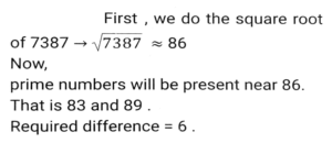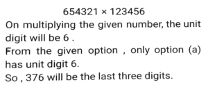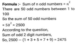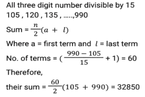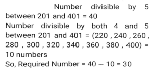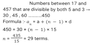 Number System (Part-5)Total Questions: 5011. What is the sum of all three digit numbers which are divisible by 15? [SSC CHSL 13/03/2023 (2nd Shift)](a) 32850(b) 36825(c) 41200(d) 28750Correct Answer: (a) 32850Solution:12. If the sum of three consecutive composite numbers is 36. then what is the product of the three numbers? [SSC CHSL 14/03/2023 (3rd Shift) ](a) 1460(b) 1750(c) 1680(d) 1820Correct Answer: (c) 1680Solution:13. What are the last three digit of the multiplication 654321 x 123456? [SSC CHSL 14/03/2023 (4th Shift)](a) 376(b) 344(c) 324(d) 352Correct Answer: (a) 376Solution:14. What is the sum of all two digit even numbers? [SSC CHSL 15/03/2023 (1st Shift)](a) 2520(b) 2470(c) 2430(d) 2410Correct Answer: (c) 2430Solution:15. XY7B is a 4 digit number divisible by 4. What is the largest value of B? [SSC CHSL 15/03/2023 (3rd Shift)](a) 6(b) 2(c) 8(d) 0Correct Answer: (a) 6Solution:16. How many numbers are there from 17 to 457 which are divisible' by both 5 and 3? [SSC CHSL 16/03/2023 (2nd Shift)](a) 29(b) 35(c) 30(d) 33Correct Answer: (a) 29Solution:17. The product of two consecutive prime numbers is 7387. What is the difference between the two numbers? [SSC CHSL 16/03/2023 (2nd Shift)](a) 3(b) 6(c) 2(d) 4Correct Answer: (b) 6Solution:18. How many numbers are there between 201 and 401 which are divisible by 5 but not by 4? [SSC CHSL 16/03/2023 (4th Shift)](a) 30(b) 20(c) 40(d) 45Correct Answer: (a) 30Solution:19. What is the sum of all two digit odd numbers? [SSC CHSL 17/03/2023 (1st Shift)](a) 2375(b) 2475(c) 2325(d) 2425Correct Answer: (b) 2475Solution:20. If the sum of a number and its reciprocal is 4, find the sum of their squares, [SSC CHSL 17/03/2023 (2nd Shift)](a) 12(b) 16(c) 14(d) 18Correct Answer: (c) 14Solution:Submit Quiz« Previous12345Next »