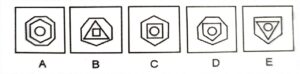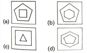 Odd One Out (Non Verbal)Total Questions: 321. Four of the following five figures are alike in a certain way and thus form a group. Which is the one that does NOT belong to that group? [SSC CHSL Tier II 10/01/2024](a) B(b) D(c) C(d) ECorrect Answer: (a) BSolution:2. Four of the following five figures are alike in a certain way and thus form a group. Select the one that does NOT belong to that group. [SSC CHSL Tier II 02/11/2023](a) D(b) A(c) B(d) CCorrect Answer: (a) DSolution:Logic: Reason - Both the figures are arranged diagonally in all the figures except figure (D).3. Four of the following five figures are alike in a certain way and thus form a group. Which is the one that does NOT belong to that group? [SSC CGL Tier II 26/10/2023](a) C(b) D(c) B(d) ACorrect Answer: (c) BSolution:Logic: all the images are having a circle inside of them, except the option c.4. Identify the figure that does NOT belong to the following series. [SSC CHSL Tier II 26/06/2023](a)(b)(c)(d)Correct Answer: (b)Solution:Expect option (b) outer figure has one more side than inner figure.5. Out of the following five figures, four are alike in some manner and one differs from these in that manner. Select the odd figure. [SSC CGL Tier II 02/03/2023](a)(b)(c)(d)Correct Answer: (a)Solution:The left part of the image is identical with the right part of the image except option A.6. Out of the following five figures, four are alike in some manner and one differs from these in that manner. Select the odd figure. [SSC CGL Tier II 02/03/2023](a)(b)(c)(d)Correct Answer: (a)Solution:7. Out of the following five figures, four are alike in some manner and one differs from these in that manner. Select the odd figure. [SSC CGL Tier II 03/03/2023](a)(b)(c)(d)Correct Answer: (a)Solution:8. Out of the following five figures, four are alike in some manner and one differs from these in that manner. Select the odd figure. [SSC CGL Tier II 03/03/2023](a)(b)(c)(d)Correct Answer: (d)Solution:In all the other images, every column is occupied by either a cross or a circle, except this figure d where the second column is vacant.9. Out of the following five figures, four are alike in some manner and one differs from these in that manner. Select the odd figure. [SSC CGL Tier II 06/03/2023](a)(b)(c)(d)Correct Answer: (c)Solution:10. Out of the following five figures, four are alike in some manner and one differs from these in that manner. Select the odd figure. [SSC CGL Tier II 06/03/2023](a)(b)(c)(d)Correct Answer: (b)Solution:In all the figure there is only one circle inside the figure except (b).Submit Quiz1234Next »
