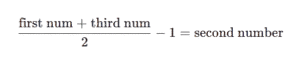 (47, 33, 21) ⇒ 47 + 21/2 = 34 − 1 = 33