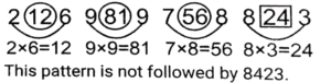 Odd One Out – Railway Reasoning part – IVTotal Questions: 5031. Select the odd one. [RRB NTPC 23/02/2021 (Morning)](a) Diamonds(b) Spades(c) Hearts(d) PearlsCorrect Answer: (d) PearlsSolution:Except Pearls all others are designs of cards.32. Select the odd one. [RRB NTPC 23/02/2021 (Morning)](a) Veil(b) Hat(c) Turban(d) HelmetCorrect Answer: (a) VeilSolution:All are related to head except Veil.33. Select the odd one. [RRB NTPC 27/02/2021 (Evening)](a) Kidney(b) Liver(c) Large Intestine(d) StomachCorrect Answer: (a) KidneySolution:Kidney is the part of excretory system but others are not.34. Select the odd one. [RRB NTPC 27/02/2021 (Evening)]2126, 9819, 7568, 8423(a) 2126(b) 7568(c) 9819(d) 8423Correct Answer: (d) 8423Solution:35. Select the option that is different from the rest. [RRB NTPC 27/02/2021 (Evening)](a) 671(b) 427(c) 275(d) 583Correct Answer: (b) 427Solution:1st digit + 3rd digit = 2nd digit671 → 6 + 1 = 7 ⇒ 275 → 2 + 5 = 7583 → 5 + 3 = 8 ⇒ 427 → 4 + 7 ≠ 2427 is different from others.36. Select the odd one. [RRB NTPC 27/02/2021 (Evening)](a) Motherboard(b) Intel(c) Keyboard(d) PrinterCorrect Answer: (b) IntelSolution:Intel is different from others because Intel is a brand that manufactures processors.But motherboard, keyboard and printer are the hardware of the computer.37. Select the odd one. [RRB NTPC 01/03/2021 (Morning)](a) Godavari(b) Brahmaputra(c) Krishna(d) CauveryCorrect Answer: (b) BrahmaputraSolution:Except Brahmaputra river, all are located in Southern India.38. Select the odd one. [RRB NTPC 01/03/2021 (Morning)](a) JOMQ(b) KPNS(c) EJHM(d) UZXCCorrect Answer: (a) JOMQSolution:The difference between 1st and 2nd letter = +5difference between 2nd and 3rd letter = -2Difference between 3rd and 4th letter = +539. Select the odd one. [RRB NTPC 01/03/2021 (Morning)](a) Figure A(b) Figure B(c) Figure E(d) Figure CCorrect Answer: (a) Figure ASolution:Number of circles outside the figure = Number of circles inside the figure 40. Select the odd one. [RRB NTPC 01/03/2021 (Evening)](a) Ticket(b) AC 3 Tier (3A)(c) First Class (FC)(d) AC 2 Tier (2A)Correct Answer: (a) TicketSolution:Ticket is different from others.Except for the ticket, all are the berths of the train.Submit Quiz« Previous12345Next »