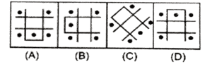 Odd One Out – Railway Reasoning part – VIIITotal Questions: 3921. Find the person who does not belong to the group. [RRB ALP 20/08/2018 (Evening)](a) Rakesh Sharma(b) Kalpana Chawla(c) Sunita Williams(d) Mahendra Singh DhoniCorrect Answer: (d) Mahendra Singh DhoniSolution:Except MS Dhoni all are astronauts. The odd one is MS Dhoni.22. Select the figure that does NOT belong in the following group. [RRB ALP 21/08/2018 (Afternoon)](a) B(b) C(c) D(d) ACorrect Answer: (b) CSolution:It is the only non vertical non horizontal oriented image in the given series.23. Select the odd figure one out of the given series. [RRB ALP 21/08/2018 (Evening)](a) d(b) b(c) a(d) cCorrect Answer: (c) aSolution:All the options uses electricity to operate and are modern technologies except the postcard.24. Select the figure which does NOT belong to the group. [RRB ALP 21/08/2018 (Evening)](a) C(b) D(c) A(d) BCorrect Answer: (b) DSolution:The only figure in the given having lines inside of it intersect each other at perpendicular.25. Select the figure which does NOT belong to the group. [RRB ALP 21/08/2018 (Evening)](a) C(b) B(c) D(d) ACorrect Answer: (c) DSolution:The only figure having arrow pointing in anticlockwise direction.26. Select the figure which does NOT belong to the group. [RRB ALP 29/08/2018 (Morning)](a) 1(b) 3(c) 2(d) 4Correct Answer: (b) 3Solution:Only figure having arrow in the anticlockwise direction, rest figure have arrow in clockwise direction.27. Select the figure that does NOT belong in the following group. [RRB ALP 29/08/2018 (Afternoon)](a) C(b) B(c) D(d) ACorrect Answer: (c) DSolution:The odd figure is 28. Select the figure that does NOT belong in the following group. [RRB ALP 29/08/2018 (Evening)](a) B(b) D(c) C(d) BCorrect Answer: (d) BSolution:In figure A, C and D, Number sequence is anticlockwise direction in continue number except in figure B.29. Select the figure that does NOT belong in the following group. [RRB ALP 29/08/2018 (Afternoon)](a) A(b) C(c) B(d) DCorrect Answer: (b) CSolution:In figure A, B and D V’s are moving in the same direction but in figure B V is moving in opposite directions.30. Select the figure that does NOT belong in the following group. [RRB ALP 29/08/2018 (Afternoon)](a) B(b) D(c) C(d) ACorrect Answer: (b) DSolution:Submit Quiz« Previous1234Next »
