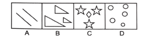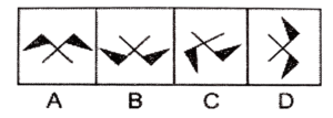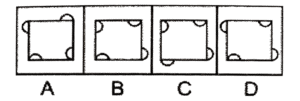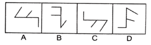 Odd One Out – Railway Reasoning part – VIIITotal Questions: 3931. Select the figure that does NOT belong in the following group. [RRB ALP 29/08/2018 (Evening)](a) B(b) C(c) D(d) ACorrect Answer: (c) DSolution:In A, B and C shaded and non shaded regions are of same shape but in D shaded and non shaded regions are of not the same shape.32. Select the figure that does NOT belong to the group. [RRB ALP 29/08/2018 (Evening)](a) B(b) C(c) D(d) ACorrect Answer: (a) BSolution:In the figure A, C and D two semicircles are outside the square and two semicircles inside the square. But in figure B three semicircles are inside the square and one semicircle inside the square. So the odd one is figure B.33. Select the figure that does NOT belong to the group. [RRB ALP 29/08/2018 (Evening)](a) B(b) C(c) D(d) ACorrect Answer: (b) CSolution:In figure A, B and D two shaded triangles are on the same side of the line but in figure C it is not happening.So, figure C is an odd one.34. Select the figure that does NOT belong in the following group. [RRB ALP 29/08/2018 (Evening)](a) 3(b) 1(c) 4(d) 2Correct Answer: (c) 4Solution:35. Select the figure that does NOT belong in the following group. [RRB ALP 30/08/2018 (Evening)](a) C(b) A(c) D(d) BCorrect Answer: (d) BSolution:36. Select the figure that does NOT belong in the following series. [RRB ALP 31/08/2018 (Afternoon)](a) A(b) D(c) B(d) CCorrect Answer: (b) DSolution:Logic: In the correct image, the square image is moving anticlockwise and hence, it should be on the bottom.37. Select the figure that does NOT belong in the following group. [RRB ALP 31/08/2018 (Afternoon)](a) B(b) A(c) D(d) CCorrect Answer: (d) CSolution:Except figure (C) the line drawn inside the figure separates the figure in 4 equal parts.38. Select the figure that does NOT belong in the following group. [RRB ALP 31/08/2018 (Evening)](a) C(b) A(c) B(d) DCorrect Answer: (a) CSolution:In A, B and D all the figures are the same but in C figures are different.39. Select the odd figure out of the given series. [RRB ALP 31/08/2018 (Evening)](a) 1(b) 3(c) 4(d) 2Correct Answer: (c) 4Solution:In figure 1, 2 and 3 one arrow is rotating in a clockwise direction. But only in figure 4 the arrow is not rotating. So the odd one is figure 4. Submit Quiz« Previous1234
