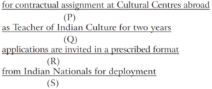 Ordering of Words in a Sentence (CDS-Solved Paper)Total Questions: 501. The correct sequence should be [Evening Shift-2019 (II)](a) RPSQ(b) RQPS(c) PSQR(d) PQSRCorrect Answer: (a) RPSQSolution:RPSQ is the correct sequence.2. The correct sequence should be [Evening Shift-2019 (II)](a) SQPR(b) QSRP(c) QRPS(d) SPRQCorrect Answer: (b) QSRPSolution:QSRP is the correct sequence.3. The correct sequence should be [Evening Shift-2019 (II)](a) RSPQ(b) SPRQ(c) QPSR(d) PSQRCorrect Answer: (c) QPSRSolution:QPSR is the correct sequence.4. The correct sequence should be [Evening Shift-2019 (II)](a) SPRQ(b) QRSP(c) PRQS(d) RSPQCorrect Answer: (a) SPRQSolution:SPRQ is the correct sequence.5. The correct sequence should be [Evening Shift-2019 (II)](a) QPRS(b) SRPQ(c) PQRS(d) RSQPCorrect Answer: (d) RSQPSolution:RSQP is the correct sequence.6. The correct sequence should be [Evening Shift-2019 (II)](a) SRQP(b) PSQR(c) SRPQ(d) QPSRCorrect Answer: (a) SRQPSolution:SRQP is the correct sequence.7. The correct sequence should be [Evening Shift-2019 (II)](a) PRQS(b) QSPR(c) RQSP(d) PSRQCorrect Answer: (b) QSPRSolution:QSPR is the correct sequence.8. The correct sequence should be [Evening Shift-2019 (II)](a) PRSQ(b) PRQS(c) PQSR(d) SPRQCorrect Answer: (d) SPRQSolution:SPRQ is the correct sequence.9. The correct sequence should be [Evening Shift-2019 (II)](a) PQSR(b) RQSP(c) RPQS(d) QSPRCorrect Answer: (c) RPQSSolution:RPQS is the correct sequence.10. The correct sequence should be [Evening Shift-2019 (II)](a) RSQP(b) QPRS(c) QRPS(d) RQPSCorrect Answer: (a) RSQPSolution:RSQP is the correct sequence.Submit Quiz12345Next »