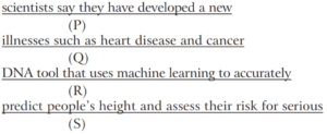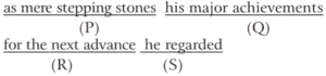 Ordering of Words in a Sentence (CDS-Solved Paper)Total Questions: 5011. The correct sequence should be [Evening Shift-2019 (II)](a) PRQS(b) SPQR(c) RQSP(d) QSRPCorrect Answer: (c) RQSPSolution:RQSP is the correct sequence.12. The correct sequence should be [Evening Shift-2019 (II)](a) SPQR(b) SQPR(c) SPRQ(d) RPQSCorrect Answer: (b) SQPRSolution:SQPR is the correct sequence.13. The correct sequence should be [Evening Shift-2019 (II)](a) SPRQ(b) SQRP(c) SRQP(d) PQRSCorrect Answer: (a) SPRQSolution:SPRQ is the correct sequence.14. The correct sequence should be [Morning Shift-2019 (I)](a) RSQP(b) SPQR(c) RPSQ(d) QRSPCorrect Answer: (a) RSQPSolution:RSQP is the correct sequence.15. The correct sequence should be [Morning Shift-2019 (I)](a) QRSP(b) SPQR(c) SQRP(d) RSQPCorrect Answer: (c) SQRPSolution:SQRP is the correct sequence.16. The correct sequence should be [Morning Shift-2019 (I)](a) QRSP(b) QPSR(c) SQRP(d) RSQCorrect Answer: (b) QPSRSolution:QPSR is the correct sequence.17. The correct sequence should be [Morning Shift-2019 (I)](a) QRSP(b) QPSR(c) SQRP(d) SQPRCorrect Answer: (c) SQRPSolution:SQRP is the correct sequence.18. The correct sequence should be [Morning Shift-2019 (I)](a) PQSR(b) RPSQ(c) SQRP(d) QRPSCorrect Answer: (d) QRPSSolution:QRPS is the correct sequence.19. The correct sequence should be [Morning Shift-2019 (I)](a) PRSQ(b) RPSQ(c) PSRQ(d) QRPSCorrect Answer: (a) PRSQSolution:PRSQ is the correct sequence.20. The correct sequence should be [Morning Shift-2019 (I)](a) PRSQ(b) SQRP(c) QSRP(d) PQRSCorrect Answer: (b) SQRPSolution:SQRP is the correct sequence.Submit Quiz« Previous12345Next »