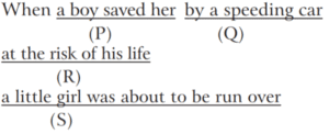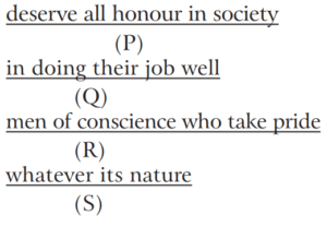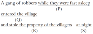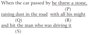 Ordering of Words in a Sentence (Part-3) (CDS-Solved Paper)Total Questions: 4811. The correct sequence should be [Morning Shift-2016 (I)](a) RQSP(b) QRPS(c) PRSQ(d) SPQRCorrect Answer: (a) RQSPSolution:RQSP is the correct sequence.12. The correct sequence should be [Morning Shift-2016 (I)](a) PSRQ(b) PRSQ(c) SPQR(d) RQSPCorrect Answer: (a) PSRQSolution:PSRQ is the correct sequence.13. The correct sequence should be [Morning Shift-2016 (I)](a) PRQS(b) PSRQ(c) RPQS(d) RPSQCorrect Answer: (d) RPSQSolution:RPSQ is the correct sequence.14. The correct sequence should be [Morning Shift-2016 (I)](a) QSPR(b) QRSP(c) PSRQ(d) PRSQCorrect Answer: (c) PSRQSolution:PSRQ is the correct sequence.15. The correct sequence should be [Morning Shift-2016 (I)](a) QPSR(b) QSRP(c) PQSR(d) PRQSCorrect Answer: (b) QSRPSolution:QSRP is the correct sequence.16. The correct sequence should be [Morning Shift-2016 (I)](a) RSPQ(b) SRQP(c) RPSQ(d) SPRQCorrect Answer: (d) SPRQSolution:SPRQ is the correct sequence.17. The correct sequence should be [Morning Shift-2016 (I)](a) QSRP(b) SQPR(c) SPQR(d) QPSRCorrect Answer: (a) QSRPSolution:QSRP is the correct sequence.18. The correct sequence should be [Morning Shift-2016 (I)](a) SPQR(b) QRPS(c) RSPQ(d) SRQPCorrect Answer: (d) SRQPSolution:SRQP is the correct sequence.19. The correct sequence should be [Morning Shift-2016 (I)](a) SPRQ(b) RSQP(c) SQPR(d) QPSRCorrect Answer: (c) SQPRSolution:SQPR is the correct sequence.20. The correct sequence should be [Morning Shift-2015 (I)](a) PQRS(b) QPRS(c) RPQS(d) RPSQCorrect Answer: (b) QPRSSolution:QPRS is the correct sequence.Submit Quiz« Previous12345Next »