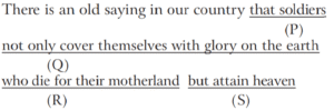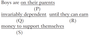 Ordering of Words in a Sentence (Part-3) (CDS-Solved Paper)Total Questions: 4831. The correct sequence should be [Evening Shift-2014 (II)](a) PSQR(b) SPRQ(c) QPSR(d) PRQSCorrect Answer: (d) PRQSSolution:PRQS is the correct sequence.32. The correct sequence should be [Evening Shift-2014 (II)](a) RSQP(b) QRSP(c) RPQS(d) QPRSCorrect Answer: (d) QPRSSolution:QPRS is the correct sequence.33. The correct sequence should be [Evening Shift-2014 (II)](a) RSPQ(b) RPSQ(c) PRSQ(d) SRPQCorrect Answer: (c) PRSQSolution:PRSQ is the correct sequence.34. The correct sequence should be [Evening Shift-2014 (II)](a) PQRS(b) QRSP(c) SQRP(d) QRPSCorrect Answer: (c) SQRPSolution:SQRP is the correct sequence.35. The correct sequence should be [Evening Shift-2014 (II)](a) RSPQ(b) PQRS(c) RPQS(d) RPSQCorrect Answer: (a) RSPQSolution:RSPQ is the correct sequence.36. The correct sequence should be [Evening Shift-2014 (II)](a) PQRS(b) RQPS(c) QPRS(d) SPQRCorrect Answer: (d) SPQRSolution:SPQR is the correct sequence.37. The correct sequence should be [Evening Shift-2014 (II)](a) PQRS(b) SPQR(c) PSQR(d) RSPQCorrect Answer: (d) RSPQSolution:RSPQ is the correct sequence38. The correct sequence should be [Morning Shift-2014 (I)](a) SRQP(b) PQRS(c) SQRP(d) QPSRCorrect Answer: (c) SQRPSolution:SQRP is the correct sequence.39. The correct sequence should be [Morning Shift-2014 (I)](a) RSPQ(b) PQRS(c) RQPS(d) QPSRCorrect Answer: (c) RQPSSolution:RQPS is the correct sequence.40. The correct sequence should be [Morning Shift-2014 (I)](a) RSPQ(b) QPSR(c) QPRS(d) PQRSCorrect Answer: (b) QPSRSolution:QPSR is the correct sequence.Submit Quiz« Previous12345Next »