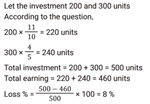 2. Nikita made two investments; she earns 10% on one investment and lost 20% on the second investment. If the investments were in the ratio 2 : 3, then she got a : [SSC MTS 05/09/2023 (2nd Shift)]