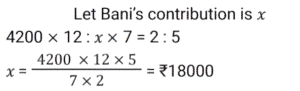 4. Swati starts a business with ₹ 4,200 and after 5 months, Bani joins Swati as her partner. After a year, the profit is divided among Swati and Bani in the ratio 2 : 5. What is Bani's contribution ? [SSC MTS 01/09/2023 (3rd Shift)]