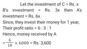 5. Three persons A, B and C invested some money in a business. The share of A is twice the share of B, and the share of B is thrice the share of C. After 1 year, they earned ₹6,000. Find the money A received. [SSC CHSL 11/08/2023 (4th Shift)]