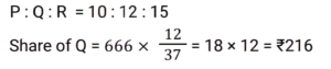 6. Three partners P, Q and R invest ₹1,000, ₹1200, and ₹1500, respectively, in a business. What should be the share of Q if the total profit is ₹666 ? [SSC CHSL 10/08/2023 (2nd Shift)]