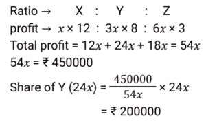 9. X, Y and Z enter into a partnership. X invests some money at the beginning. Y invests thrice the amount of X after 4 months and Z invest double the amount of Y after 9 months from the beginning. If the annual gain be Rs. 450000, then what is the share of Y ? [SSC MTS 08/05/2023 (Morning)]
