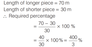 PERCENTAGE (CDS)Total Questions: 3131. A water pipe is cut into two pieces. The longer piece is 70% of the length of the pipe. By how much percentage is the longer piece longer than the shorter piece? [2014 (I) Morning Shift](a) 140 %(b) 400/3 %(c) 40 %(d) None of theseCorrect Answer: (b) 400/3 %Solution:Let the length of the pipe = 100 mSubmit Quiz« Previous1234