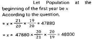 9. During the first year the population of a village increased by 5% and during the second year it diminished by 5%. At the end of the second year its population was 47,880. What was the population at the beginning of the first year? [SSC CHSL 02/07/2024 (1st Shift)]
