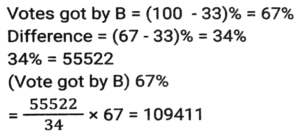 5. In an election between two candidates A and B, A got 33% of total votes casted and still lost by 55,522 votes. Find the total number of votes got by B. [SSC CHSL 01/07/2024 (3rd Shift)]